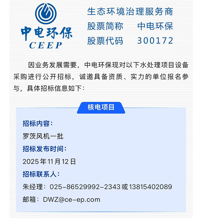【中電環(huán)保·招標(biāo)】誠邀參與:水處理項目設(shè)備采購公開招標(biāo)
